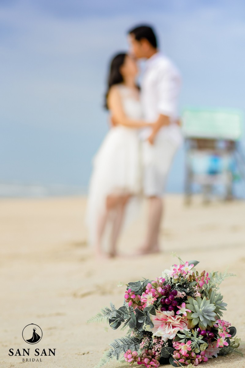 Dĩ nhiên hoa là đạo cụ không thể thiếu, một bó hoa cầm tay cho cô dâu. Hoặc chuẩn bị thêm giỏ hoa cho những concept đã lên ý tưởng.